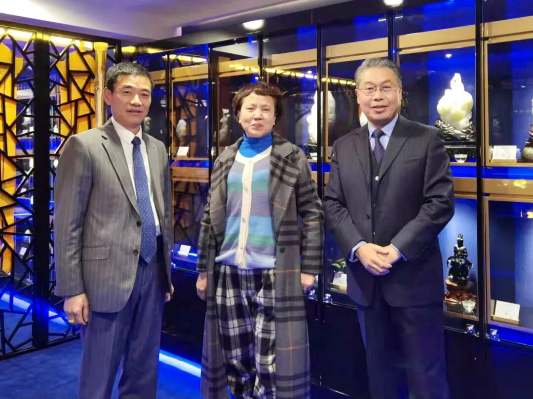 江苏佳石珠宝玉石检测有限公司授权签字人、中国珠宝玉石行业资质与奖项评审委员会委员、中国矿业大学国际学院研究员李维翰先生,携徐州玉文化研究会理事、玉器/陶瓷专委会会员孙朗青会长,与李红军老师一同,在百佛堂合影留念。